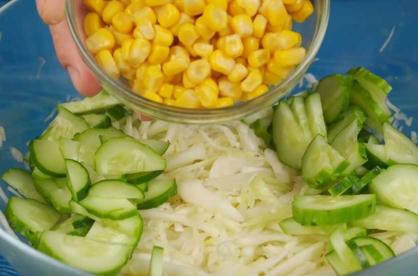 Салат получится вкусным, только при использовании качественных консервированных продуктов. Горошек и кукуруза должны быть обязательно свежими и мягкими
