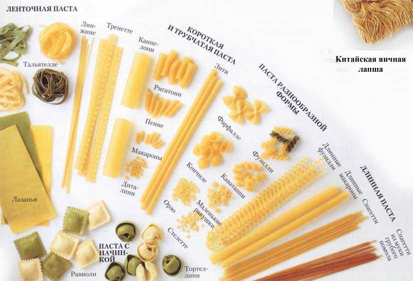- длинная — всеми любимые спагетти, стандартные макароны, тальятелле -итальянская разновидность привычной для нас лапши, феттучине, лангуине и другие мучные изделия длиной более 10 см. В их основе также пшеница твердых сортов;