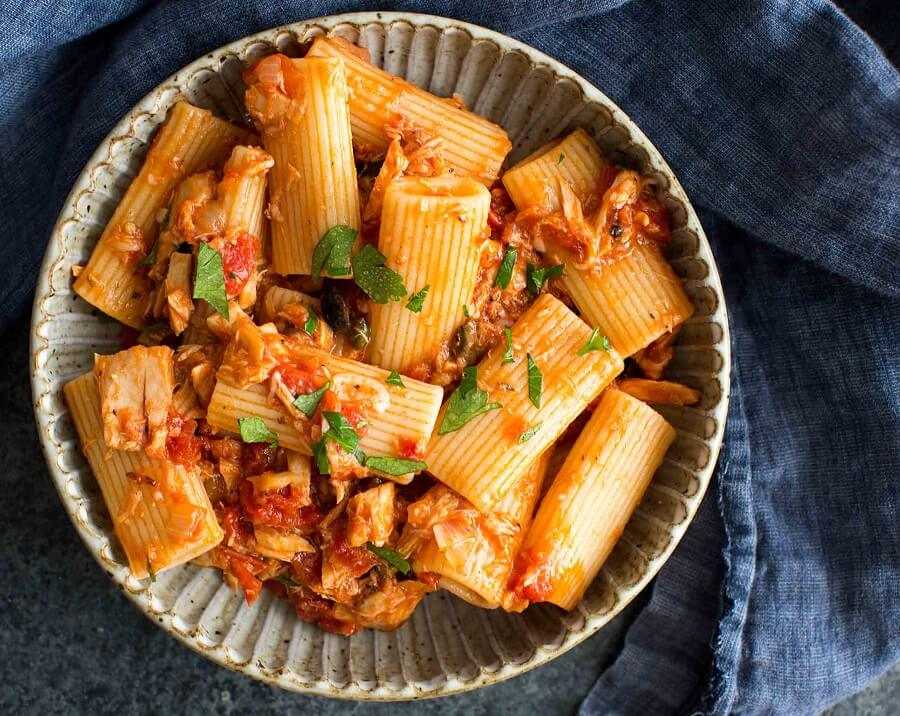 - ü тунец, лучше добавлять в уже практически готовое блюдо, так продукт не успеет сильно размякнуть, а нарезанные ингредиенты, пропитаются рыбным соусом;