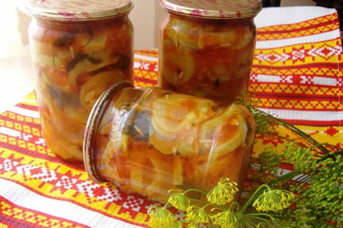 Заготовка «Тещин язык» классического «воспроизведения» предполагает обязательное использование кабачков. Для этого потребуются: