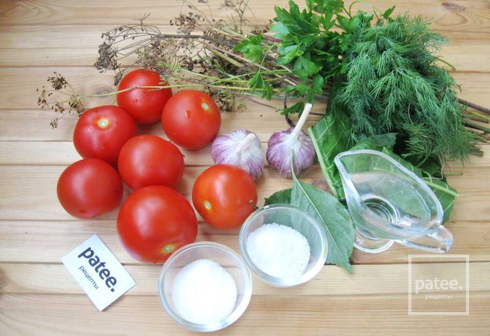 А также допускаются не совсем зрелые плоды, зеленоватые, но ни в коем случае не зелёные. В этом случае помидоры получатся оптимального вкуса: в меру сладкие и в меру кислые. Вот собственно сам рецепт. Ингредиенты, которые нам потребуются для приготовления: