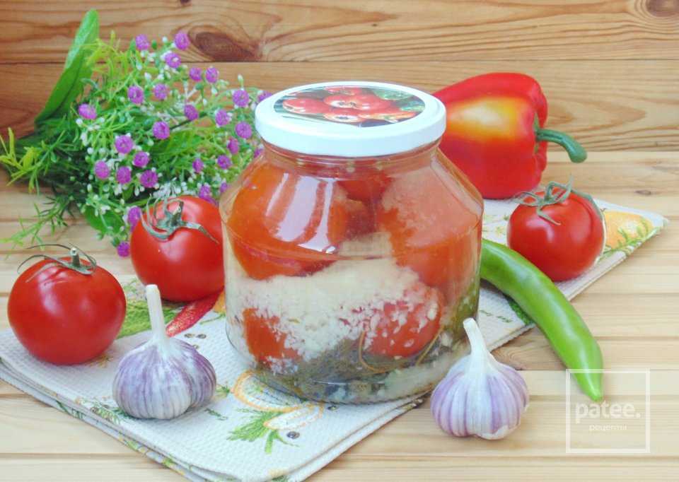 Помидоры под снегом с чесноком на зиму в литровых банках без стерилизации