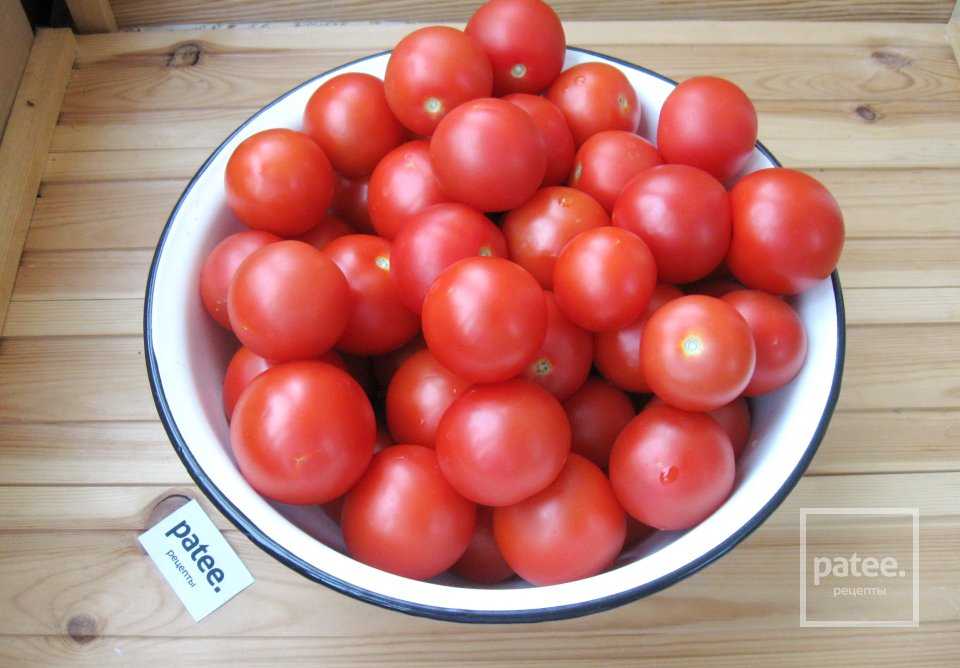 Томаты отлично консервируются методом двойной заливки. Поэтому перед вами простой рецепт на литровую банку. Прибирать будем целые плоды. Их вес тоже может отличаться, это зависит от размера и сорта овощей. Так, сорт «черри» наполнит емкость почти полностью и по граммам выйдет больше, чем той же «сливки».