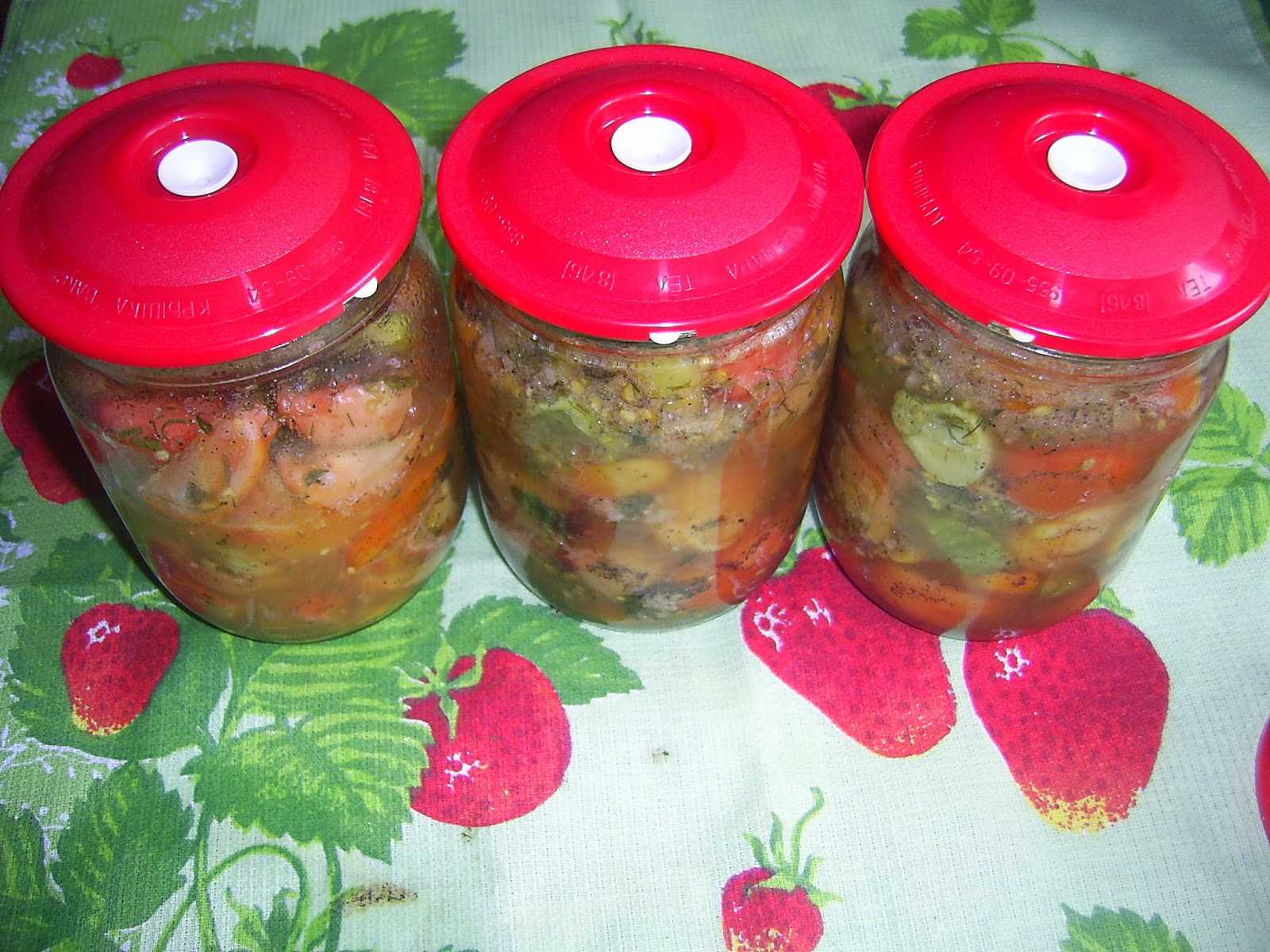 Особенность данного рецепта в том, что получается полноценный салат. Открыв зимой банку в нее можно ничего не добавлять.