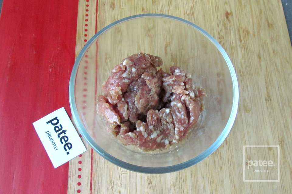 - мясной продукт нужно порубить при помощи ножа или крупно перемолоть на мясорубке;