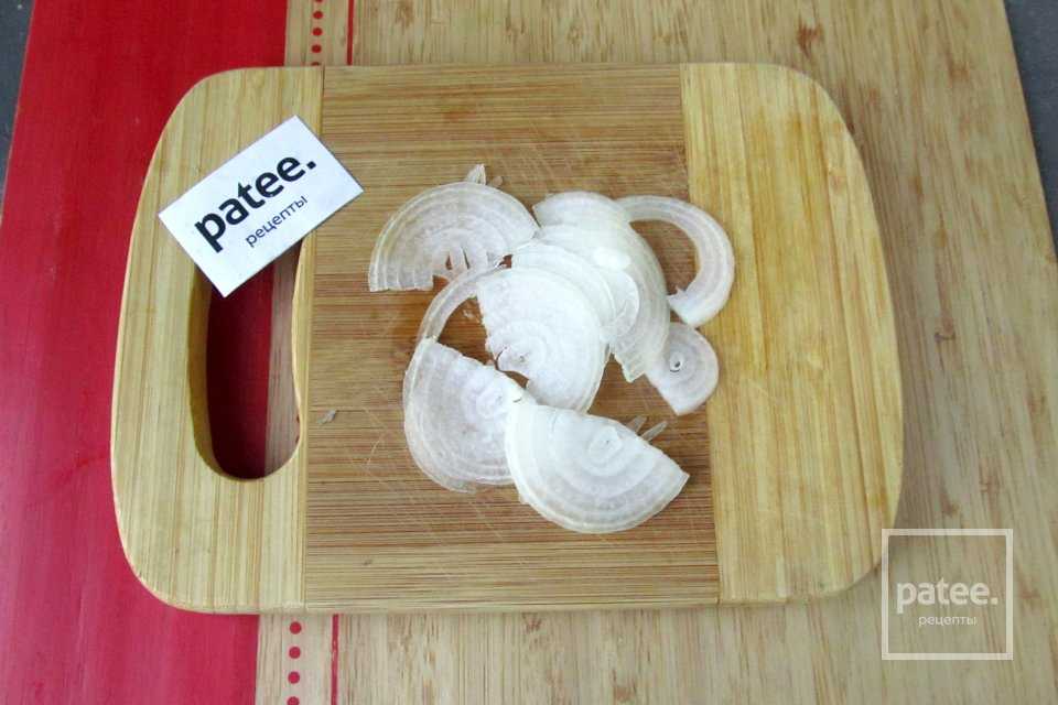 Репчатый лук чистим, нарезаем тончайшими полукольцами.