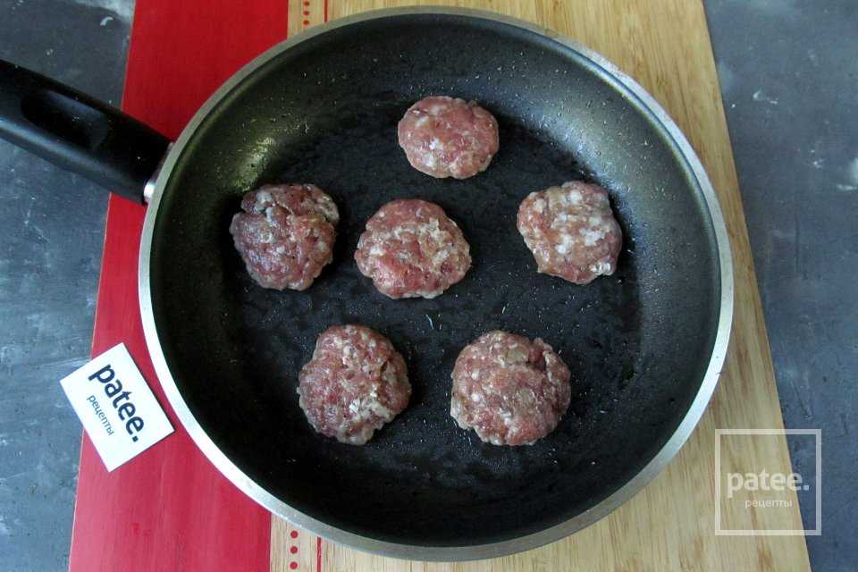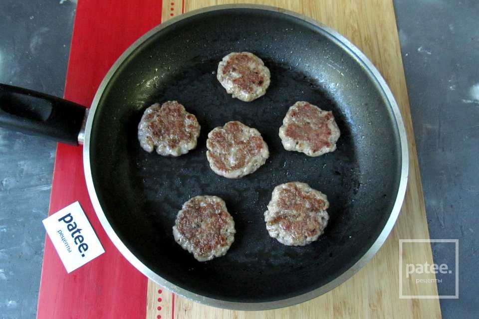 Разогреваем сковородку с растительным или сливочным маслом. Аккуратно перекладываем на нее мясные бублики.