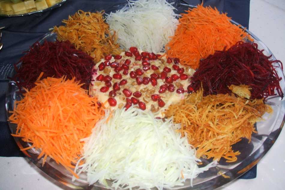 Красивое украшение праздничного салата «Чафан» на свадьбу