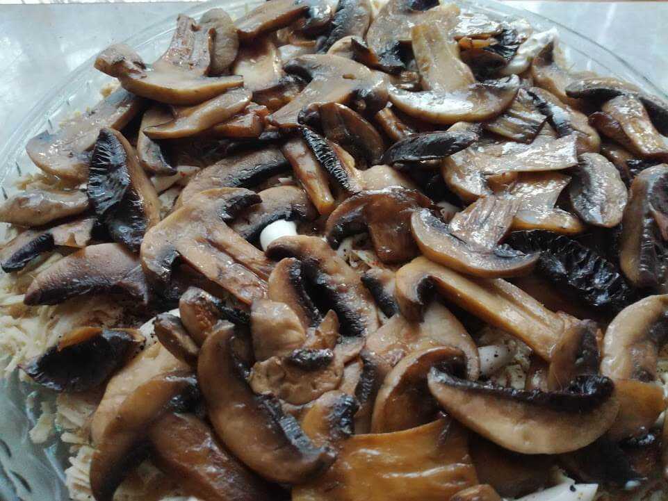 - Шампиньоны ингредиент в этом салате необязательный, как чеснок и зеленый горошек.