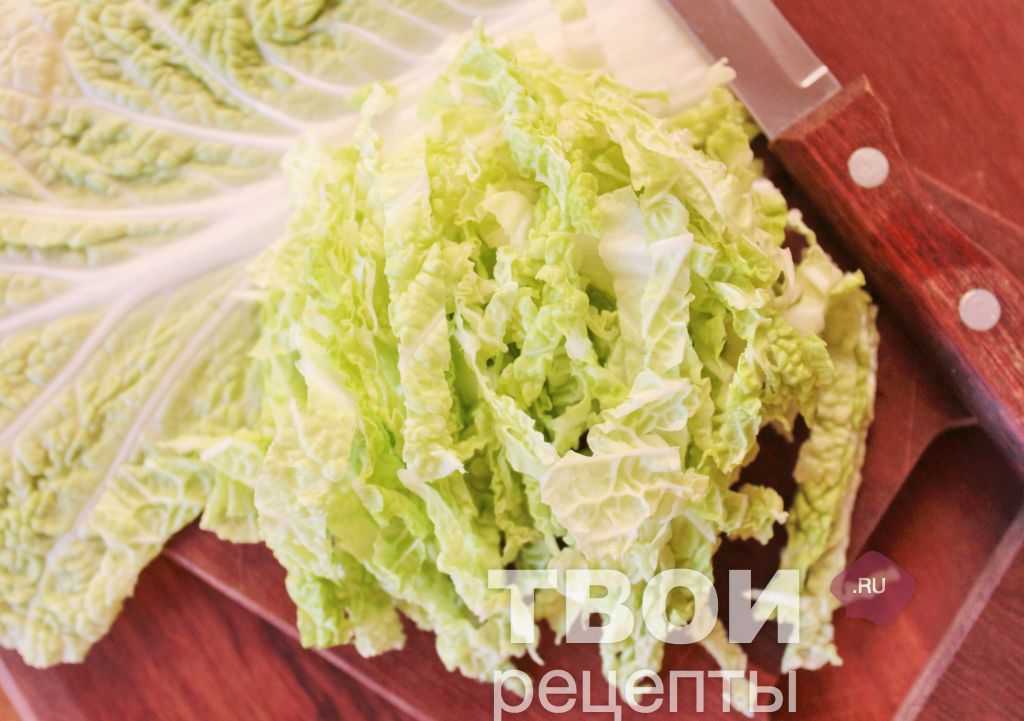 - Шпинат помыть, обсушить и разобрать на листья. Если вы используете сорта с крупными листьями – нашинкуйте их соломкой.