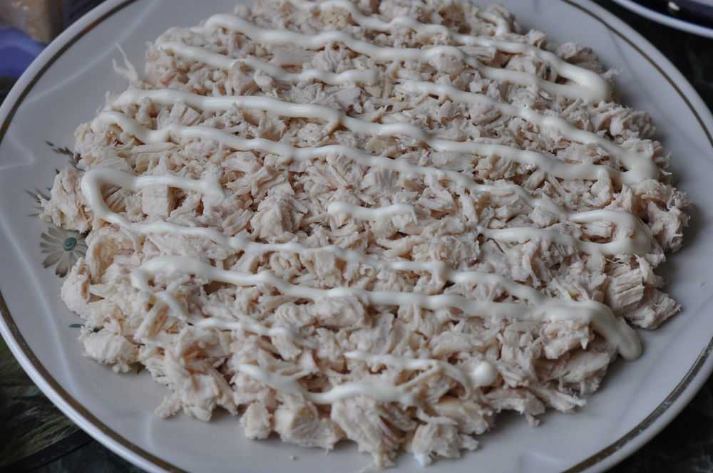 Салат «Гнездо глухаря» с курицей, классический рецепт с фото пошагово