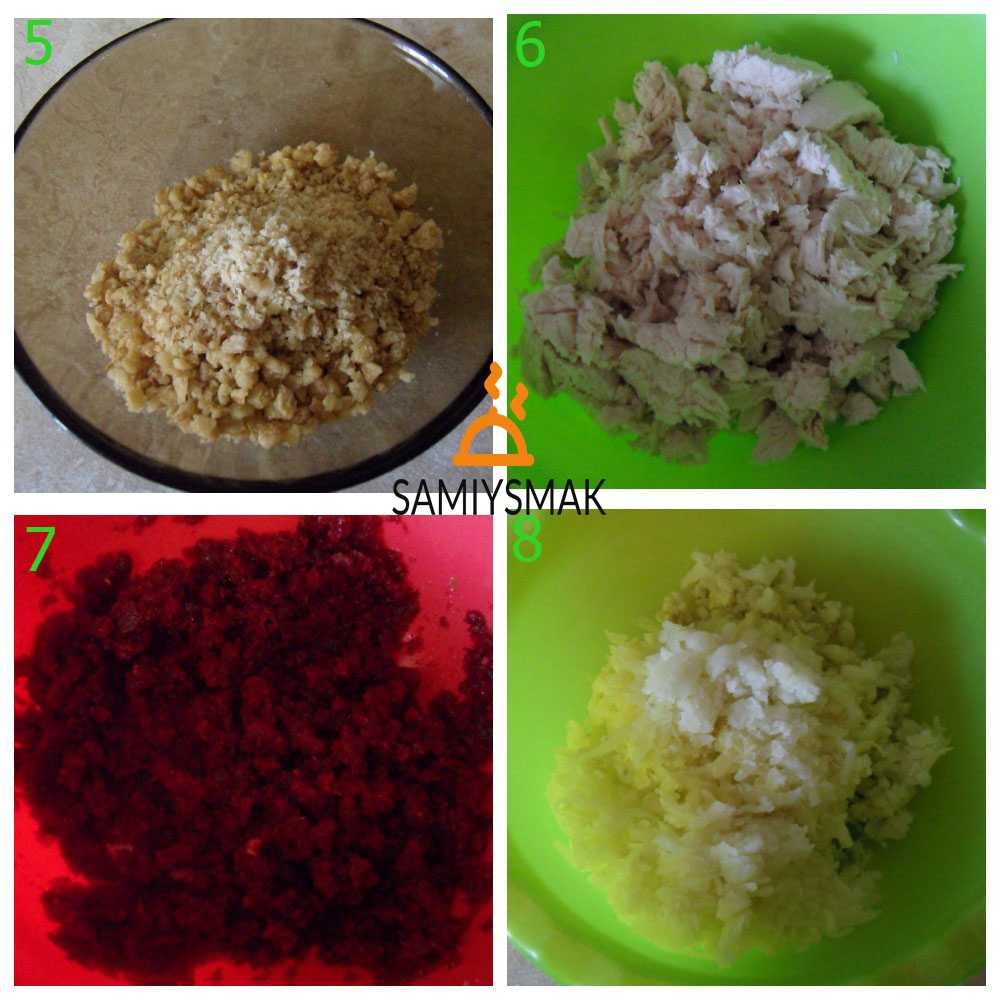 - Ополоснуть и отварить овощи до готовности, а затем почистить от кожуры. Измельчить картошку, свёклу и морковь на терке.