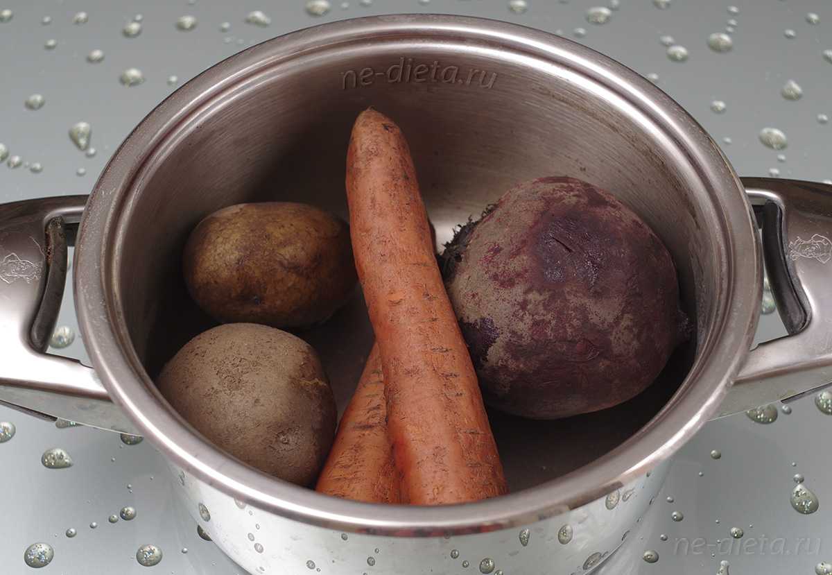 Отварить все корнеплоды. Остудить, а затем очистить.
