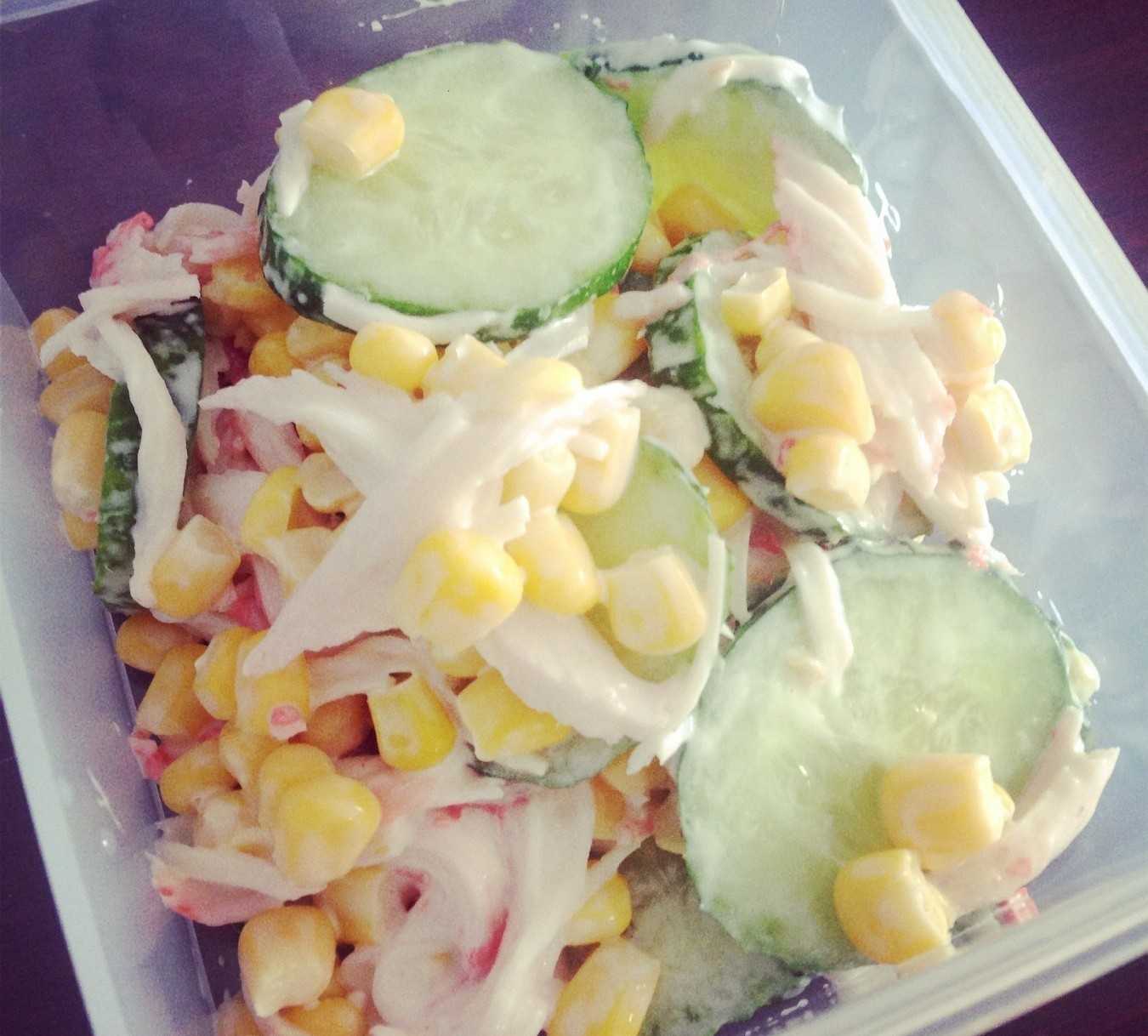 Классический рецепт крабового салата с кукурузой и огурцом