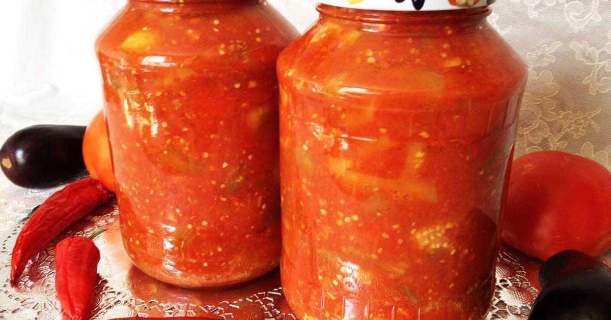 Рецепт с видео зимней заготовки вкусного салата с баклажаном и помидором