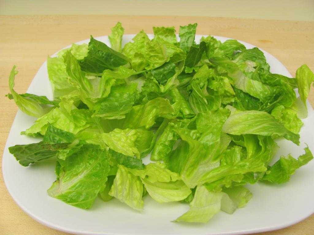 Листья салата порвите руками на небольшие кусочки и выложите ими одно блюда.