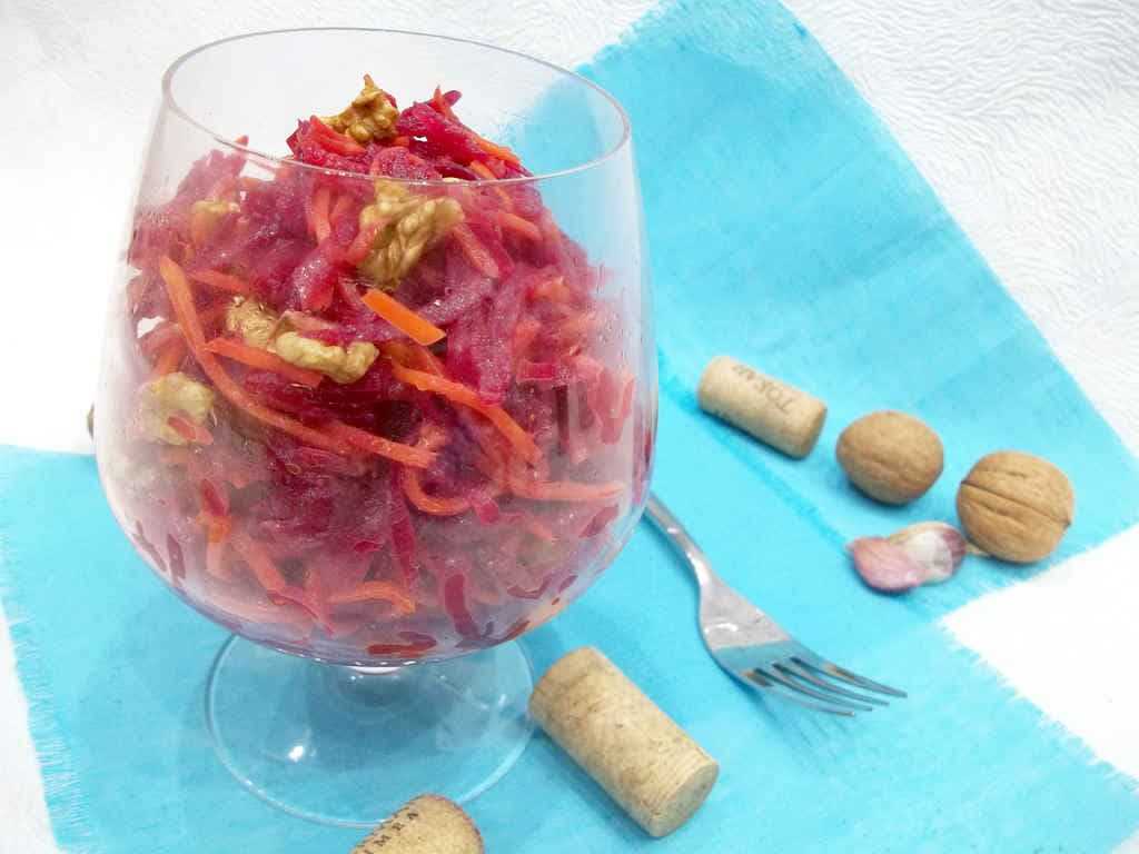 Вариации рецептов таких салатов могут быть весьма разнообразными. Самый полезный, вкусный, яркий и простой в приготовлении – салат из свеклы с грецкими орехами и корейской морковью. Оригинальное сочетание компонентов каждому едоку подарит непередаваемое наслаждение и с легкостью поддержит баланс в организме.