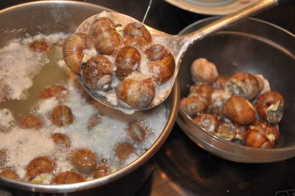 Первый вопрос, который возникает: как правильно приготовить улиток? Разумеется, речь о виноградных улитках, которых разводят на специальных фермах. На прилавки магазинов они попадают замороженными или уже готовыми к употреблению. Итак, с чего начать рецепт приготовления блюд из улиток? Хорошенько промываем их и опускаем в кипящую воду, после чего варим 3–5 минут, чтобы ушла вся слизь. Далее рецепт приготовления улиток предписывает аккуратно извлечь их из панциря и разделать, оставив только головоногу.