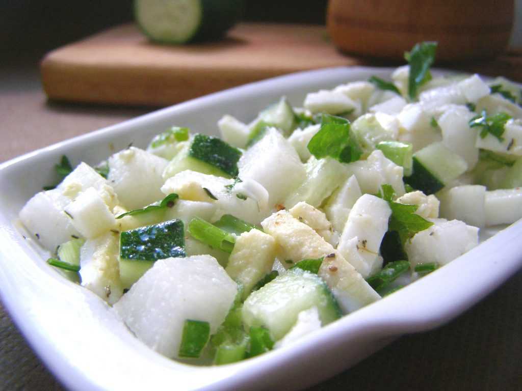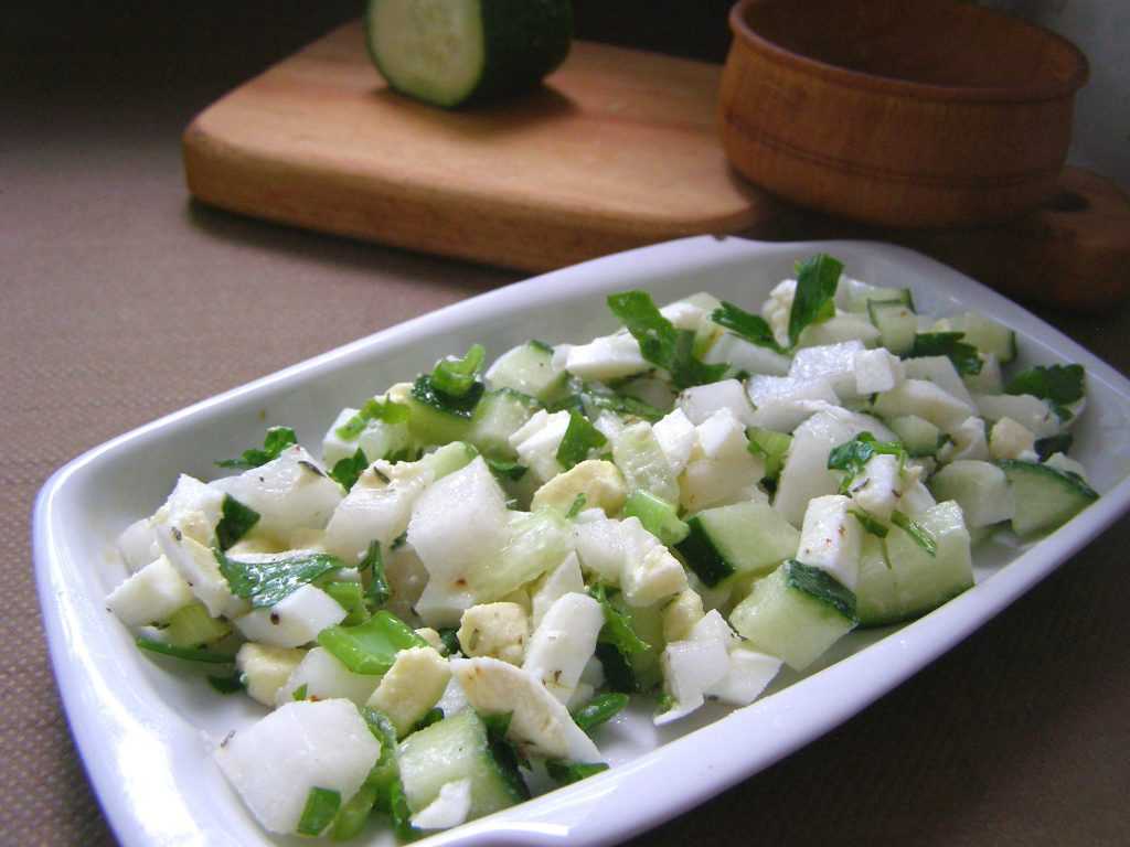 Рецепт вкусного салата с редькой, яйцами и зеленым огурцом