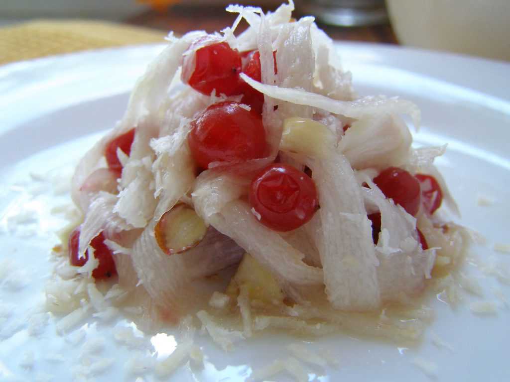 Еще один мясной вариант салата с редькой. Курица более сухая, чем говядина, поэтому заправки в этом салате должно быть больше.