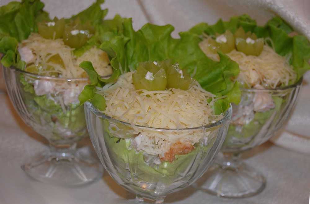 Простой рецепт салата-коктейля с ветчиной и сыром