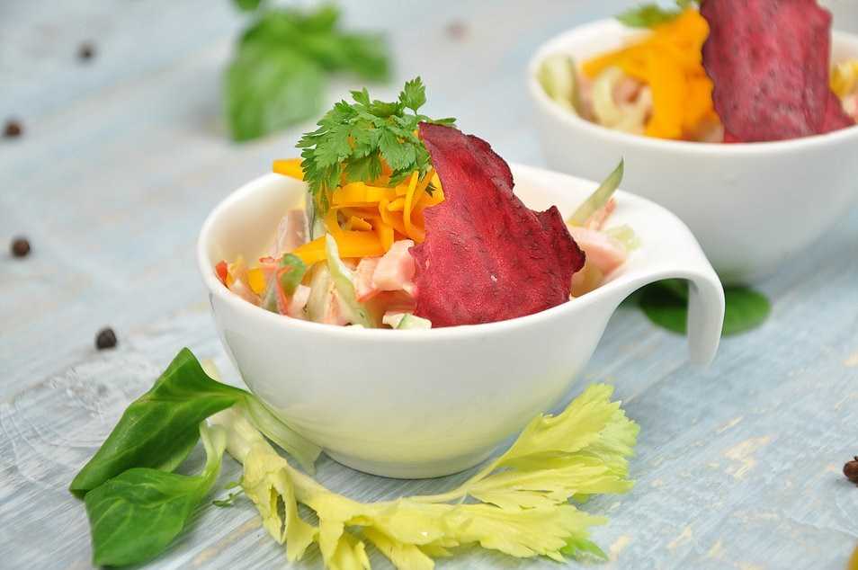 - готовьте салаты небольшими порциями, чтобы каждого продукта в порции было не больше 100 г;