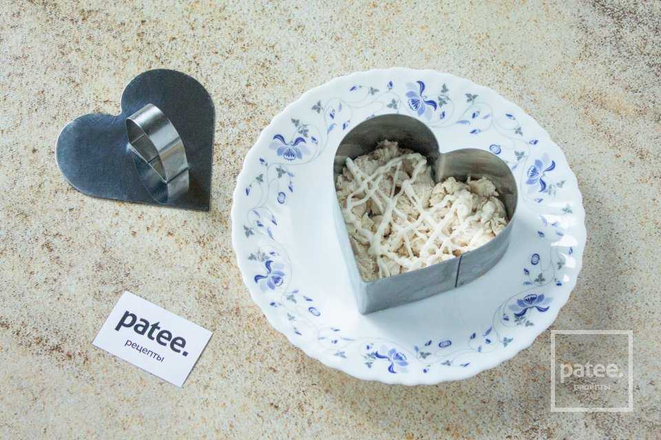 √ Слой номер четыре – опять курочка, накрытая сеткой из майонеза.