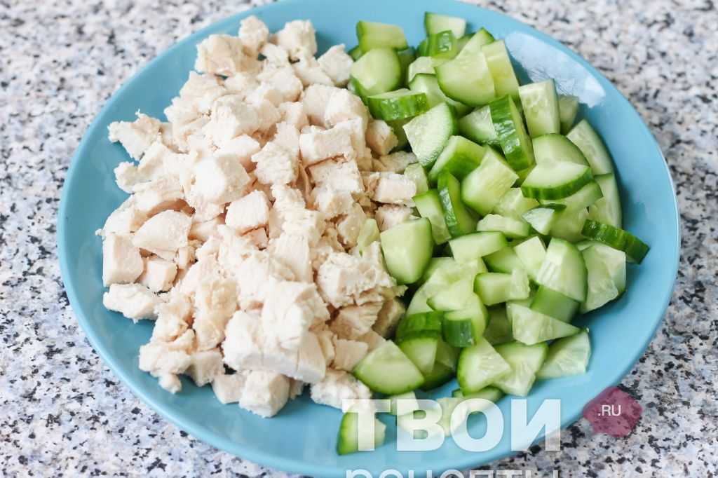 Рецепт салата с курицей, шампиньонами и маринованными огурцами без майонеза