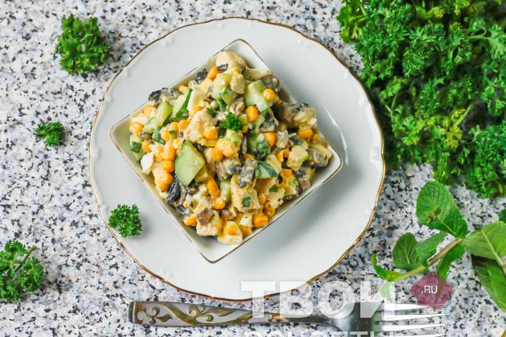 Слоенный грибной салат с курицей и огурцом (простой рецепт)