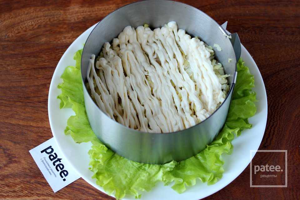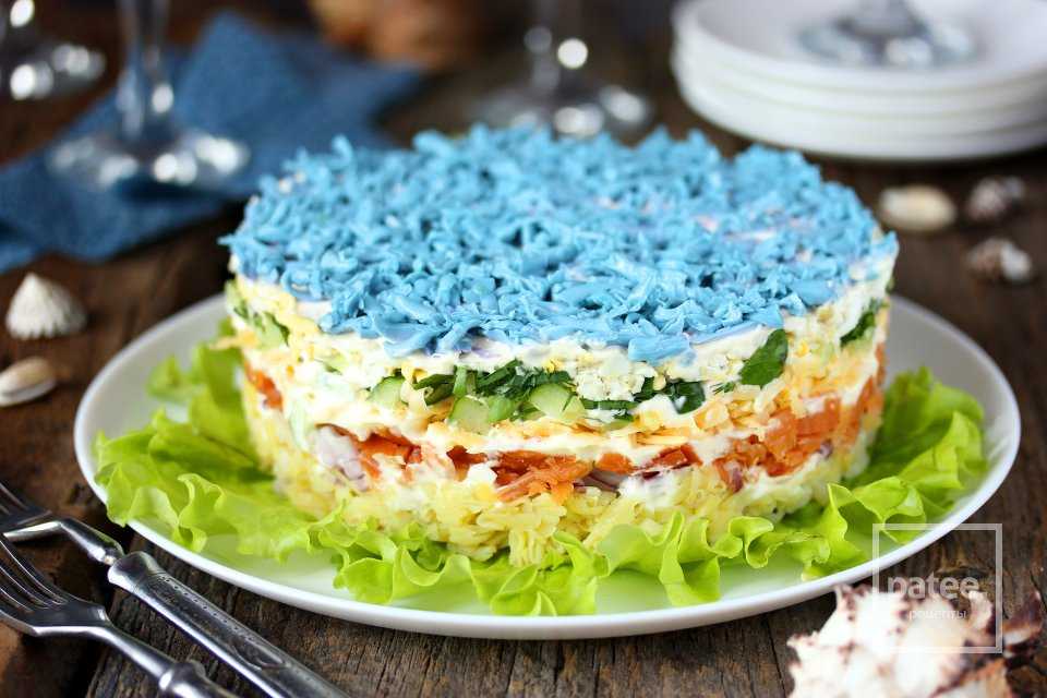 Заправить все майонезом. Соль и перец добавить по своему вкусу, перемешать все и подавать салат «Лагуна» с морской капустой и крабовыми палочками к столу