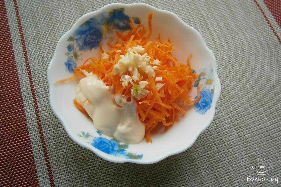 На очереди — тертая вареная морковь и майонез.
