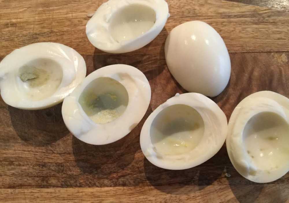 Яйца – не менее важный продукт. Они должны быть свежими, лучше с яркими желтками, поскольку они нужны для украшения. Кроме того, купленные яйца нужно ещё и правильно сварить. Их необходимо варить вкрутую, но при этом не передержать в кипятке. В обратном случае желтки приобретут немного зелёный оттенок, что испортит внешний вид салата.