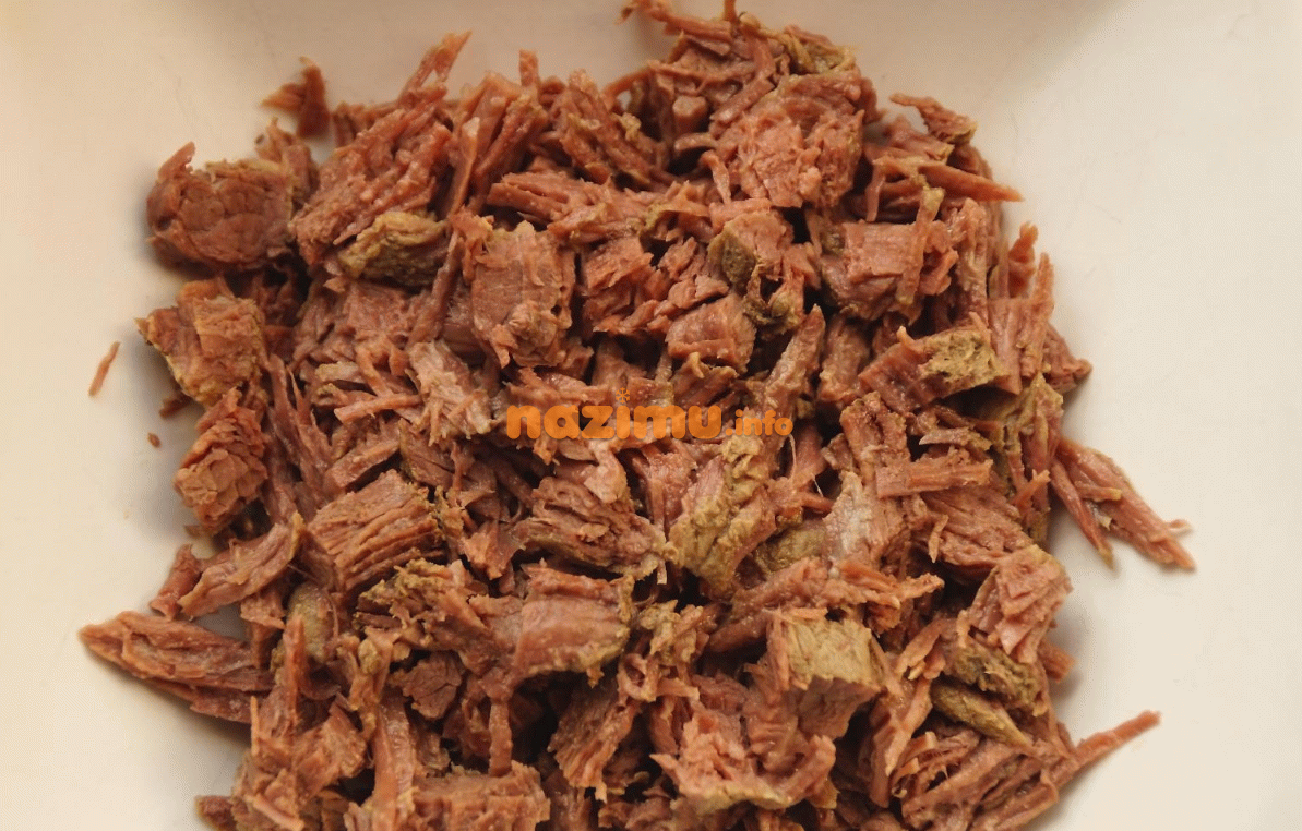 - Говяжья мякоть – 200-250 г. (отварная, но не пересушенная).