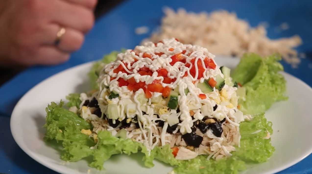 Салат с курицей и грибами слоями: пошаговый рецепт