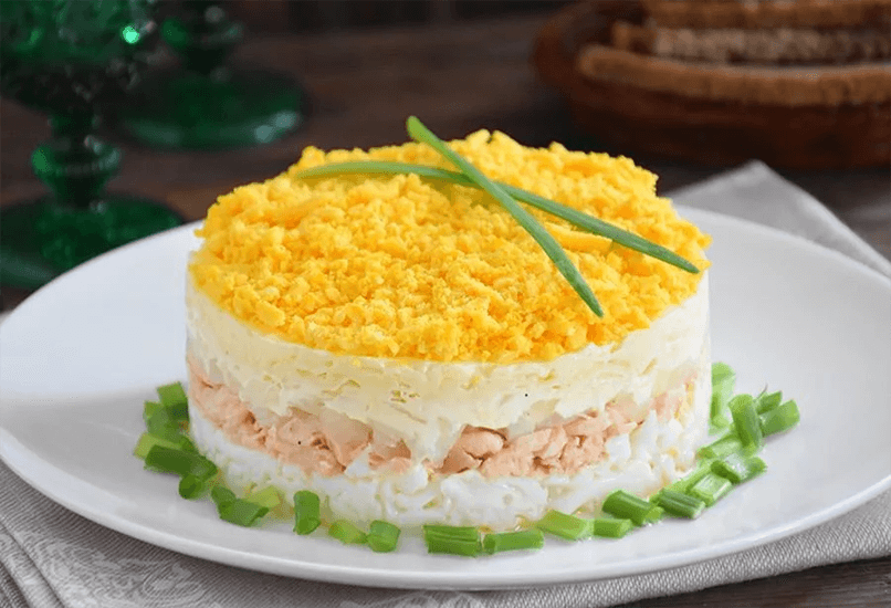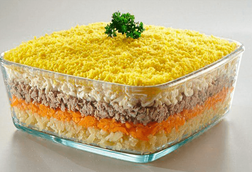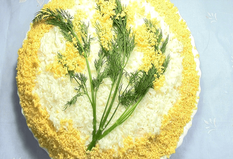 Классический салат Мимоза так же популярен в России, как Оливье и Селедка под шубой. Он готовится из простых, легко доступных ингредиентов, которые легко варьировать, добавляя рис, сыр, яблоки, масло, хотя неизменными всегда остаются рыбные консервы и яйца. Простой салат, однако, очень хорош и будет украшением любого праздничного стола.