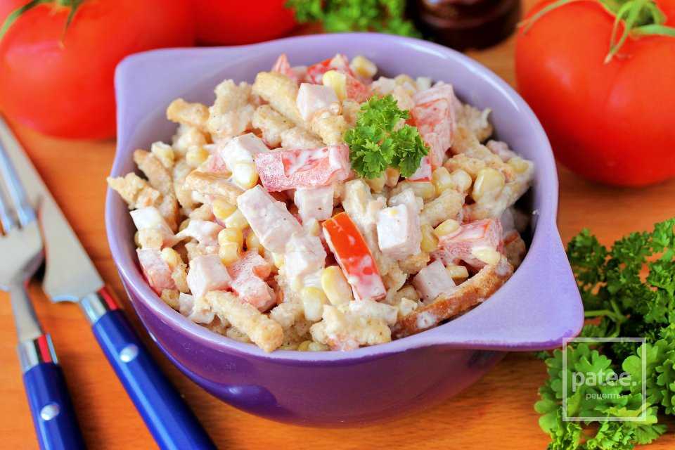 Описание рецепта — Салат Хрустик с ветчиной и сухариками: