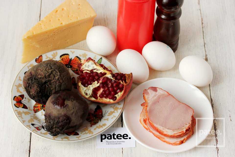 Заранее отвариваем свёклу до готовности, а также куриные яйца вкрутую. Даём остыть и свёкле, и яйцам, очищаем эти ингредиенты и приступаем к непосредственному приготовлению салата.