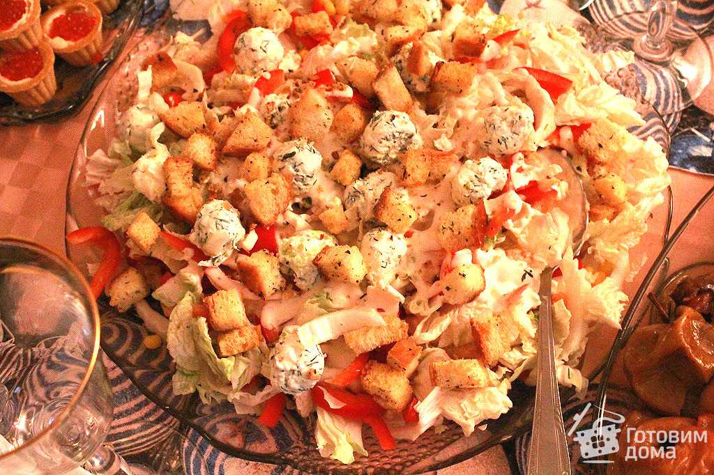 Салат Ревнивец с курицей, сухариками и сырными шариками: фото рецепт