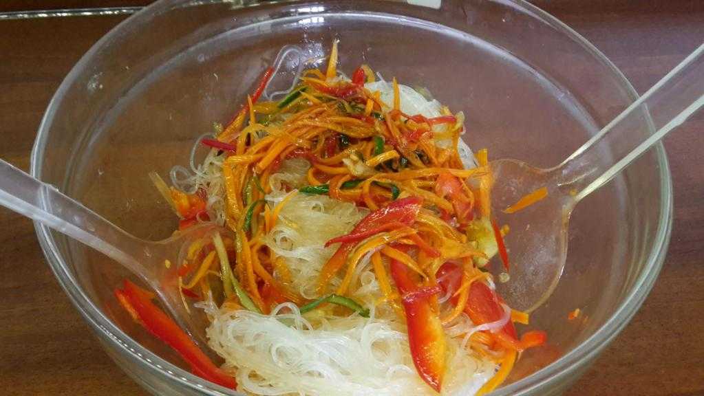 Если хочется более изысканного блюда, то можно приготовить салат из китайской лапши фунчозы по рецепту, приведенному ниже.