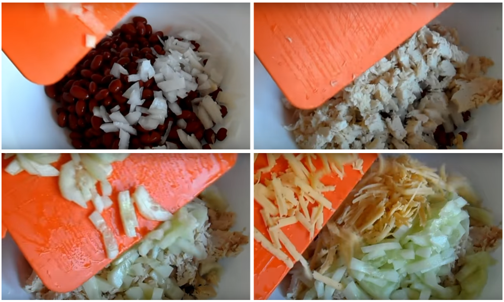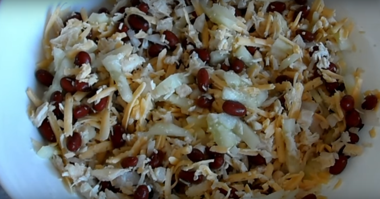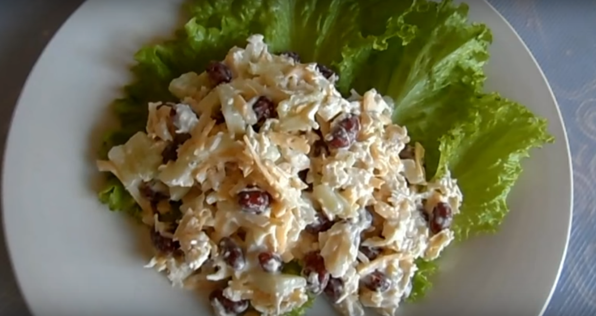 Салат из консервированной фасоли с курицей и сыром