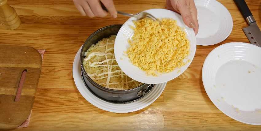 «Невесту» — выкладываем верхушку натертым белком .