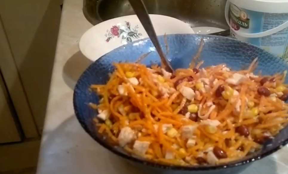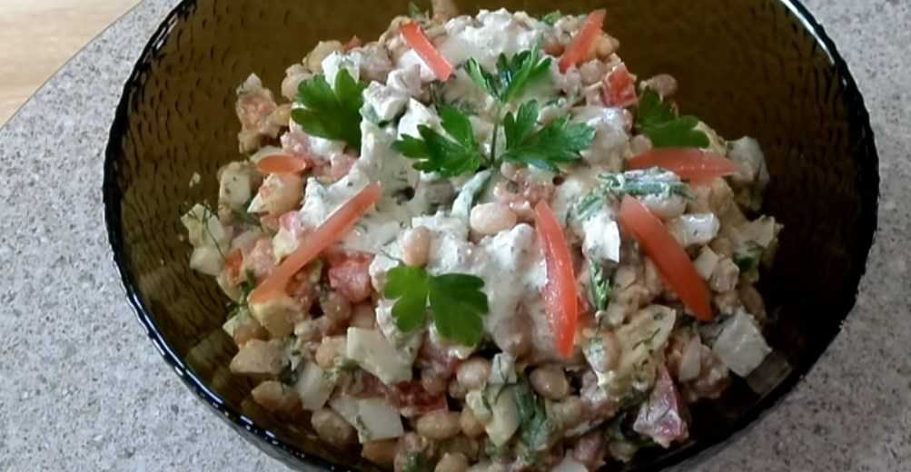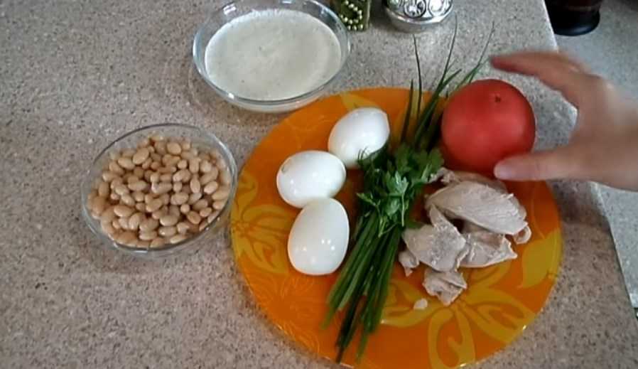Простой салат из курицы и фасоли