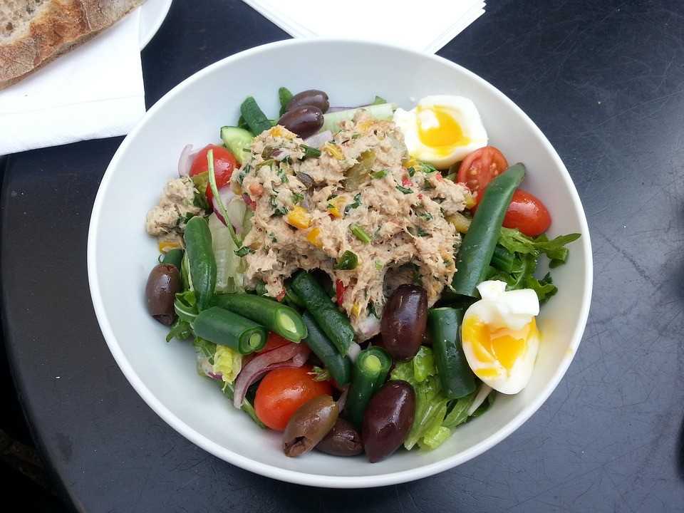 В состав диетических салатов можно добавлять разные части тунца: стейк, филе или стружку. Первые 2 части содержат 110-130 ккал, а последняя – 435 ккал. Поэтому остановите выбор на филе или стейке.