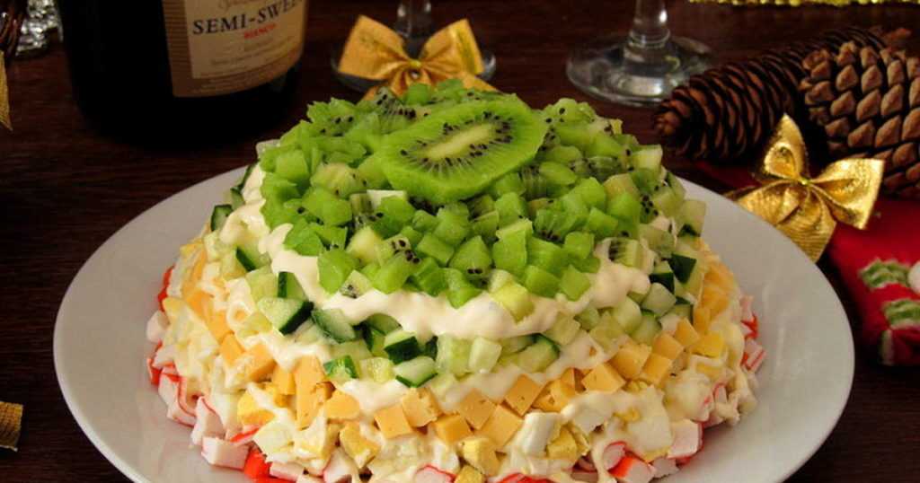 Крабовый салатик с киви — это настоящее праздничное блюдо, которое прекрасно дополнит любой праздничный стол.