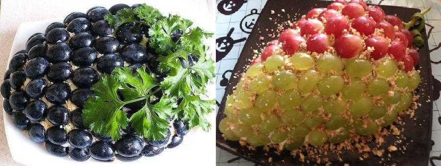 Можно украсить такой вариант виноградом на подносе, кстати грецкие орешки легко можно заменить на миндаль.