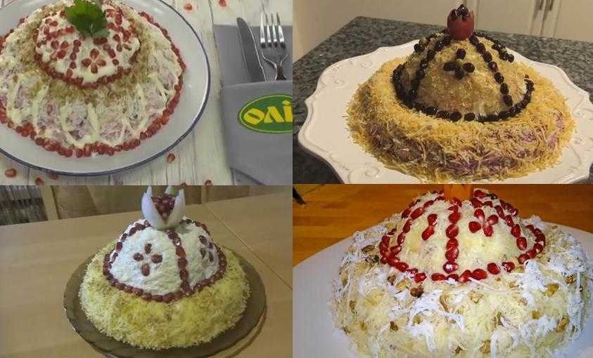 5. После присыпьте все тертым мелко на терке сыром и яйцом. Украсьте гранатовыми плодами. Варианты украшений можно взять как за идею, основу вот на этих фотокартинках: