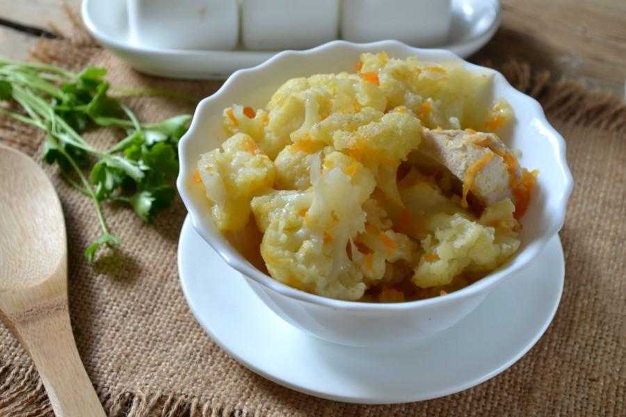 Это замечательное диетическое второе блюдо к обеду или легкий, низкокалорийный ужин для всей семьи. Причем, цветная капуста легко может быть заменена любым другим видом капусты – обычной белокочанной, брюссельской, пекинской. Кроме того, если нет свежих овощей. подойдет замороженная цветная капуста (маринованную лучше не использовать, курица может получиться жестковатой и специфичной на вкус)
