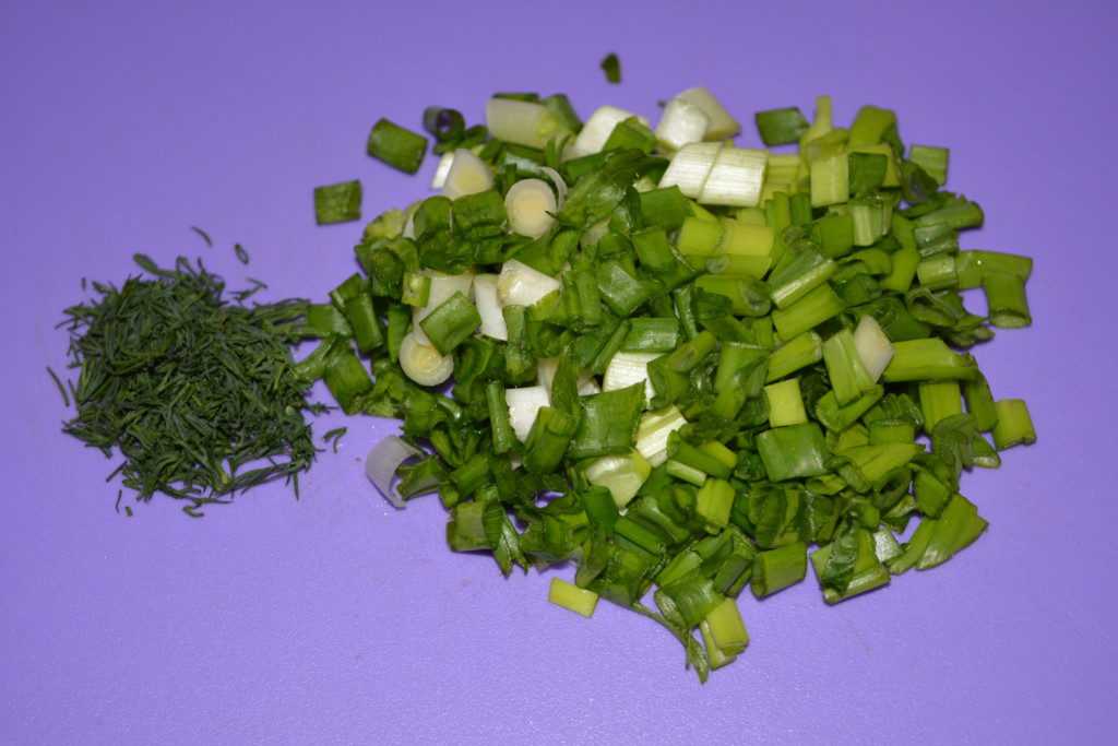 - Нарезают зелень и добавляют в салатницу к грибам.