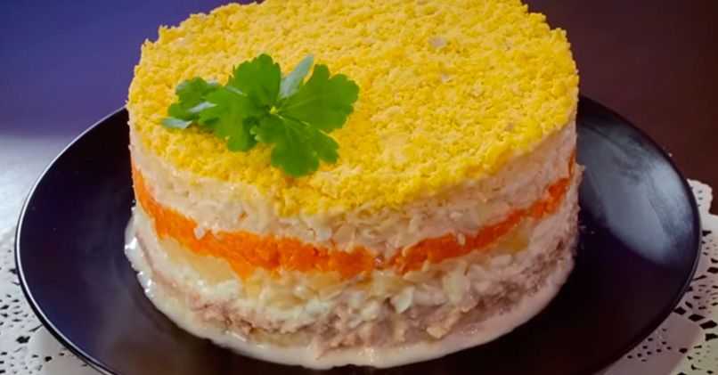 Аппетитный салат «Мимоза» с сайрой готов! Подавайте на стол!