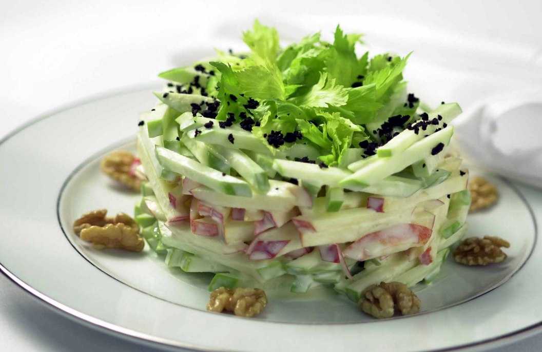 «Куриный салат с корнем сельдерея» рецепт приготовления с кислым яблоком